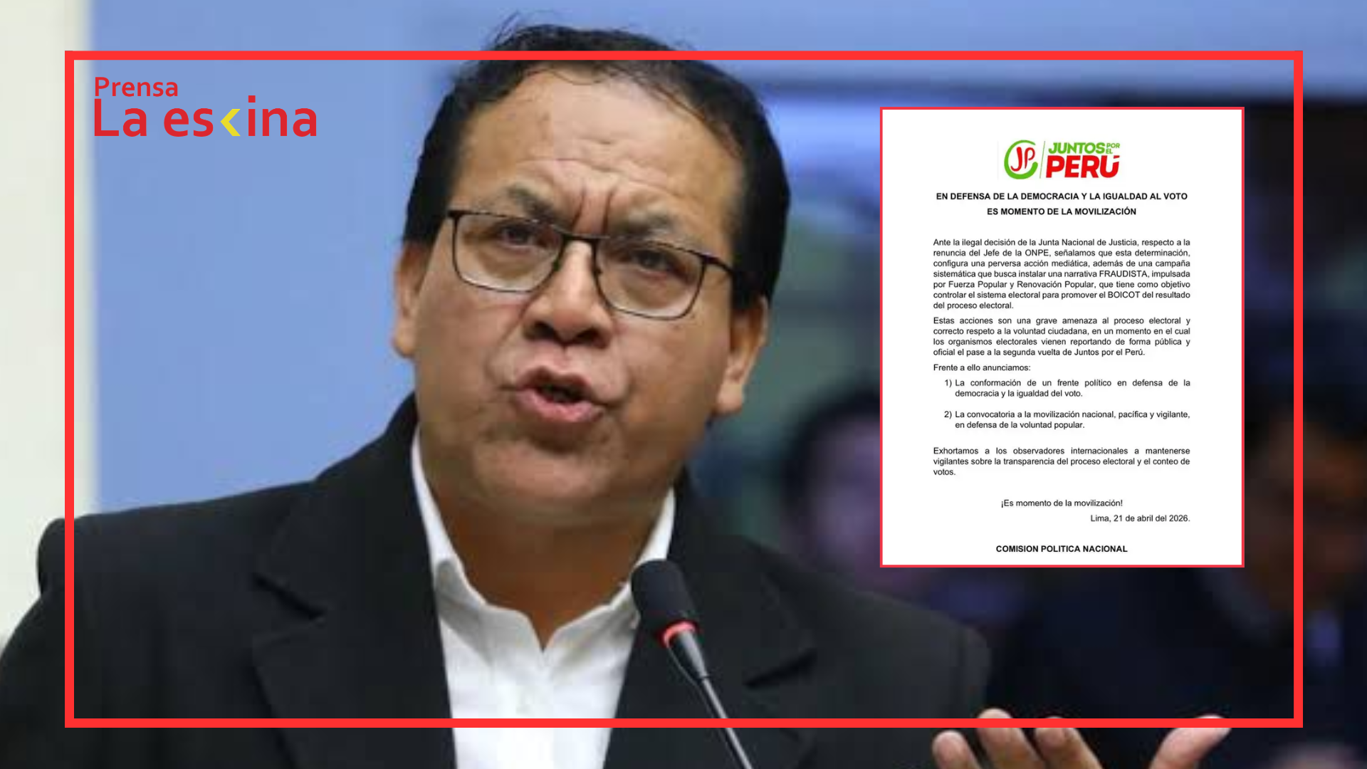 JUNTOS POR EL PERÚ CONVOCA MARCHA TRAS RENUNCIA DE CORVETTO