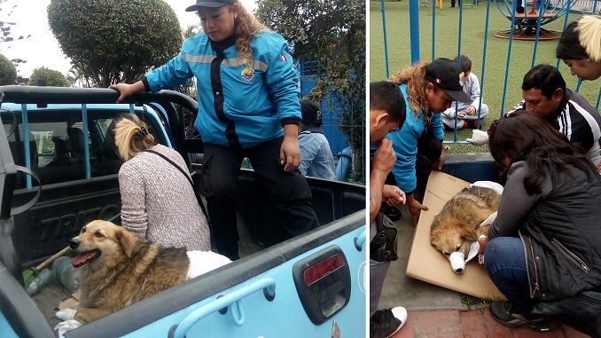 PRENSA LA ESKINA GOLDEN RETRIEVER PERRITA ATROPELLADA ES AUXILIADA POR SERENOS DE CARMEN DE LA LEGUA